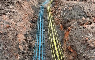 The system comprises of an 800m pumping main, of which 700m is trenched, and the remaining 100m is lagged with insulation. Trenches were dug and pipe bedding / surround installed for the pumping main pipework, along with detectable marker tape.